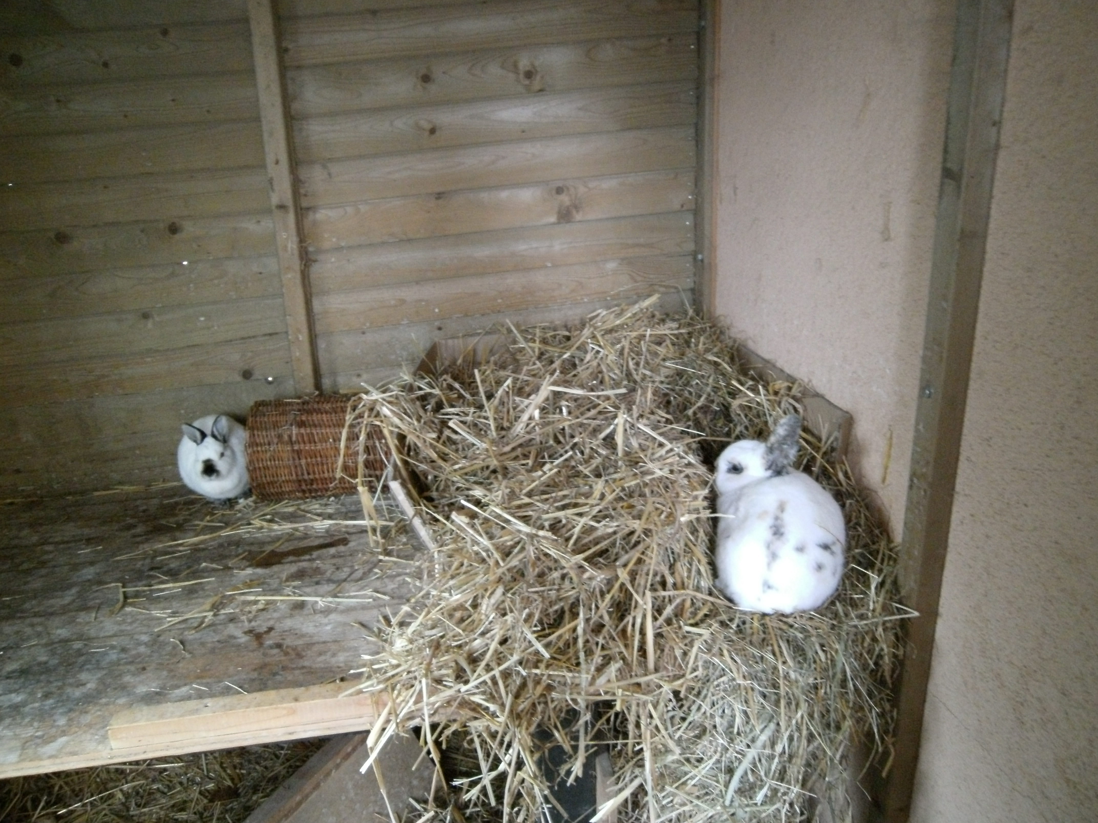 Die vorhandene Kaninchengruppe bestand aus drei älteren Tieren. Zorro. schwarz-weiß, sehr freundlich, 9 Jahre, körperlicher Abbau bereits deutlich. Lilo, schneeweiß, blaue Augen, dominant, 7 Jahre, gehandicapt durch Arthrose in einer Vorderpfote. Nano, hellbeige-braunmeliert, 7 Jahre, sehr friedlich. Sie bewohnten ein Gartenhaus mit 2 Ebenen und angegliedertem Freigehege, 45 Quadratmeter insgesamt. Früher war die Gruppe größer gewesen, aber diese Geschichte steht auf einem anderen Blatt.