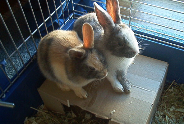 Mangels Wissen und Erfahrung war in den Tagen vor Lexa´s Ankunft bereits die Vergesellschaftung von Jonas mit Tom misslungen Nun sollte Jonas eine neue Begegnung mit Lexa haben . Lexa war zwar eigentlich als Partnertier für Tom gedacht, aber seine Chance sollte Jonas bekommen. Vielleicht würde er ein junges Weibchen eher akzeptieren als ein junges Männchen, hoffte die Menschenfrau die sich damals noch überhaupt nicht mit der Vergesellschaftung von Kaninchen auskannte. Bisher hatte sie stets das Glück gehabt, verträgliche Tiere, meist kastrierte Rammler, zu haben, die sich problemlos mit neuen Kaninchen vertragen hatten. Bis auf zwei Ausnahmen wo jeweils Weibchen im Spiel waren. Darum hatte sie auch vorsichtshalber für Jonas erst ein männliches Jungtier, Tom, geholt da nach ihrer Erfahrung kastrierte Rammler grundsätzlich weniger Aggressionen miteinander zeigen. Noch hatte sie nicht den Weg in die Kaninchenforen im Internet gefunden und schlicht und ergreifend keine Ahnung von Vergesellschaftungen. Beim geringsten Jagen oder Fellrupfen gab sie sofort auf. Dass ein Jungtier von sechs Wochen, egal ob männlich oder weiblich, Jonas nicht seine geliebte Kaninchenfrau Gulla ersetzen konnte, ist im Nachhinein betrachtet vollkommen logisch und der Menchenfrau heute auch klar. Es wundert nicht dass Jonas enttäuscht und trauernd die jungen Kaninchen, die da einfach in sein Revier eindrangen, erst mal herumscheuchte und nach ihnen schnappte.